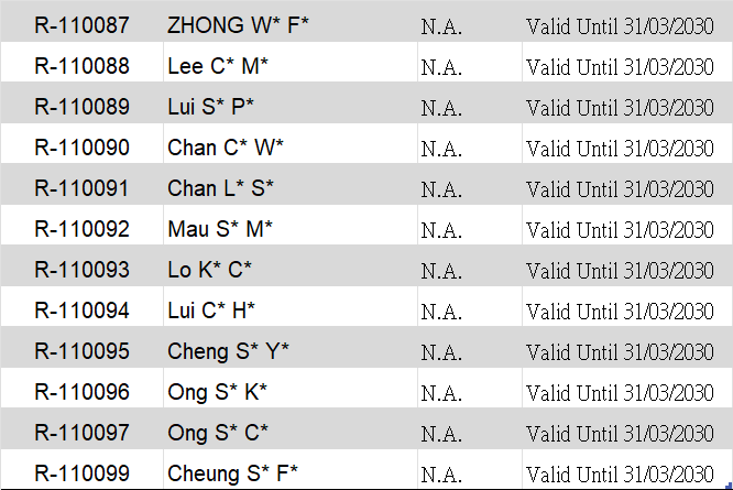 Please note the Disclaimer following the Name List. 請注意名單後面的免責聲明。